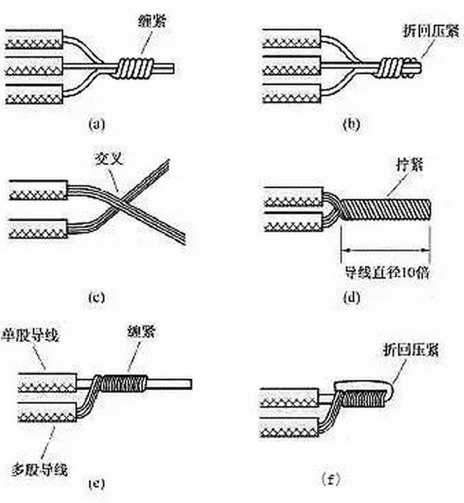 需連接的導線種類和連接形式不同,其連接的方法也不同。常用的連接方法有絞合連接、緊壓連接、焊接等。連接前應小心地剝除導線連接部位的絕緣層,注意不可損傷其芯線。